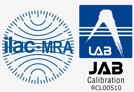 Calibration certificate issued by Olympus Corporation Test & Analysis Center, and authenticated by ILAC-MRA calibration accreditation agencies (JCSS, JAB).